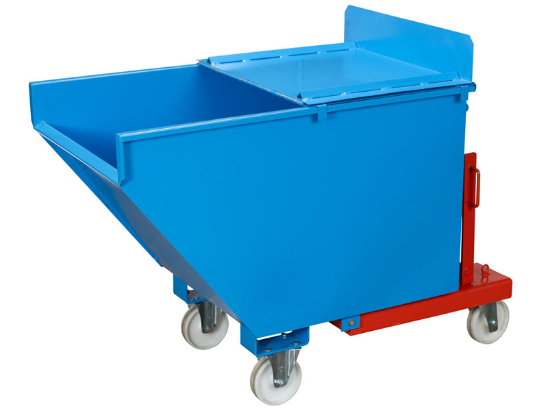 Die Kompaktkippbehälter von Bartels eignen sich aufgrund ihrer niedrigen Bauhöhen ideal als Beistell-Behälter an der Produktionsstraße. Die kompakten Kippbehälter sind bestens als Sammelcontainer für Schüttgüter aller Art geeignet.