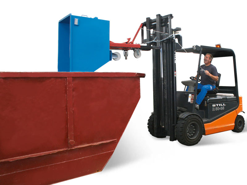 - Hydraulische Kippbremse, zur Stapler-schonenden, gedämpften Entleerung