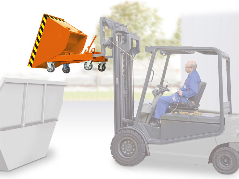 Ob Schrott, Scherben, Späne oder Müll – der Selbstkipper sammelt alles. Das Gabelstapler-Anbaugerät bietet sich aber auch als Transportgerät für schüttbare Materialien wie zum Beispiel Sand, Granulate, Kleinteile oder Bohrabfälle an. Die Schrottmulde von BARTELS ist bequem, sicher, schnell und verlangt keinen körperlichen Einsatz.