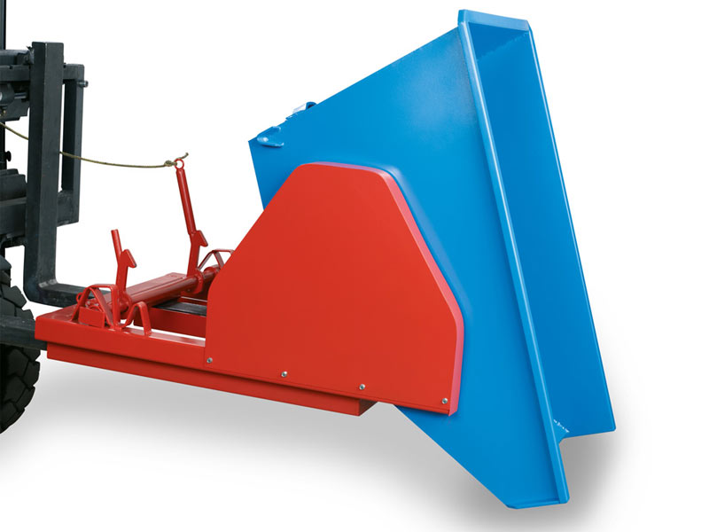 Der Spänebehälter zeichnete sich durch viel Volumen und eine hohe Traglast aus. Der in eigener Produktion gefertigte Bartels Kippbehälter entleert sich selbst, richtet sich selbst auf, verriegelt sich selbst. Dank der automatischen Auslösung kann auch aus großen Höhen ohne zusätzlichen Seilzug oder ähnliches gekippt werden und der Staplerfahrer braucht den Stapler nicht zu verlassen.