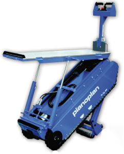 Mit horizontaler Lastplattform, frontal verschiebbar zwecks Schwerpunktverschiebung.