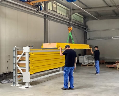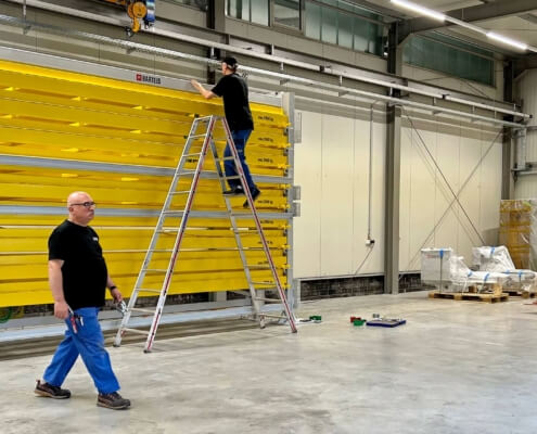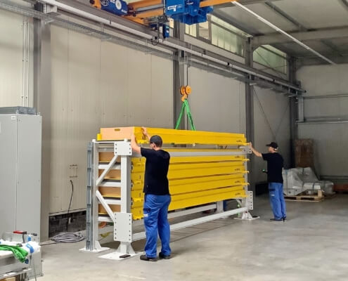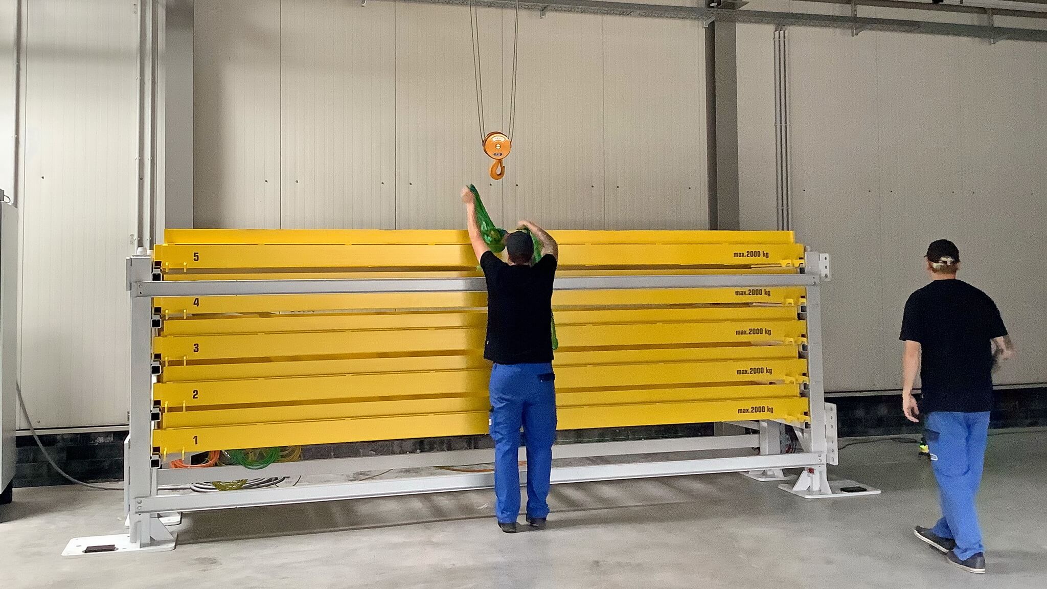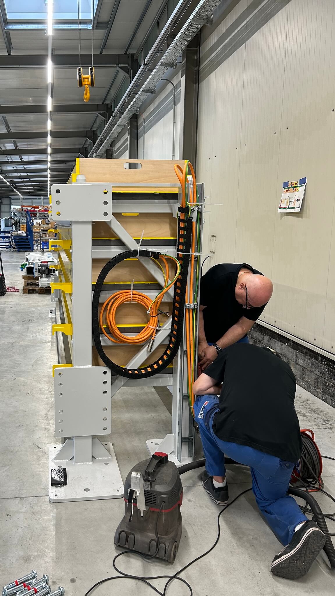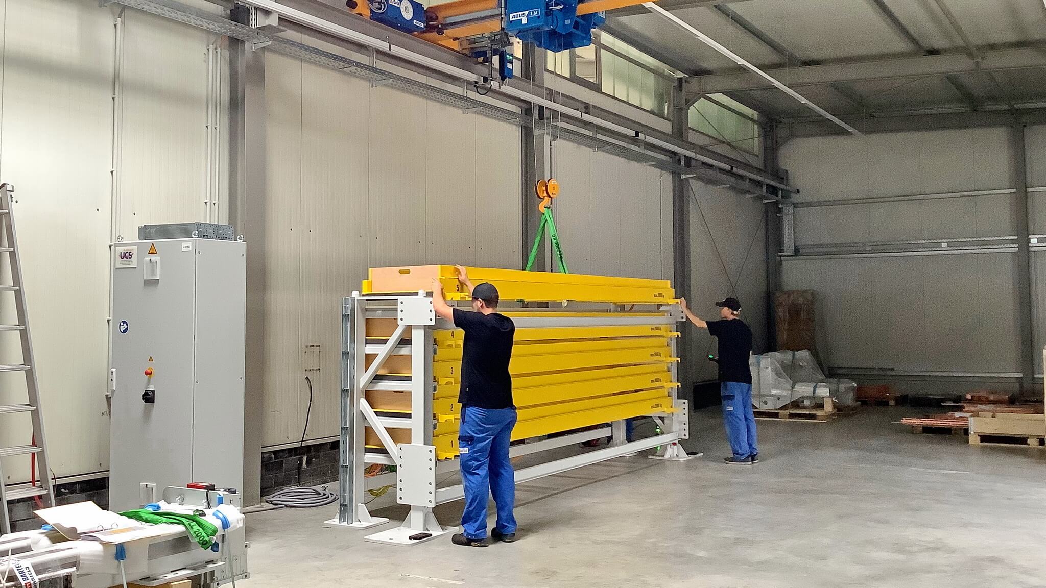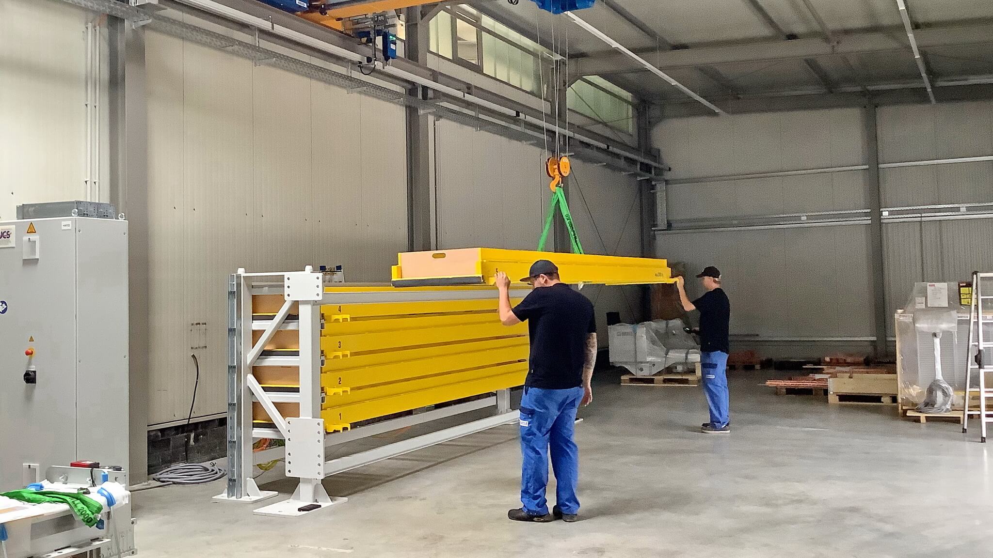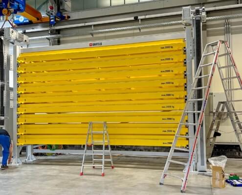 So liefen Auslieferung und Montage bei Gräper reibungslos. Am ersten Tag stand bereits nach wenigen Stunden die Stahlkonstruktion mit neun Ladungsträgern. Am zweiten Tag zog das Aufbau-Team die Ketten im Hubwerk ein, installierte den Schaltschrank und verlegte alle Stromkabel. Somit konnte bereits am zweiten Nachmittag die Elektrik eingestellt werden. Am dritten Tag erfolgten letzte Optimierungsmaßnahmen, wie etwa die Nachjustierung der Schubfächer und am späten Vormittag die technische Inbetriebnahme und Einweisung der Gräper-Mitarbeiter.