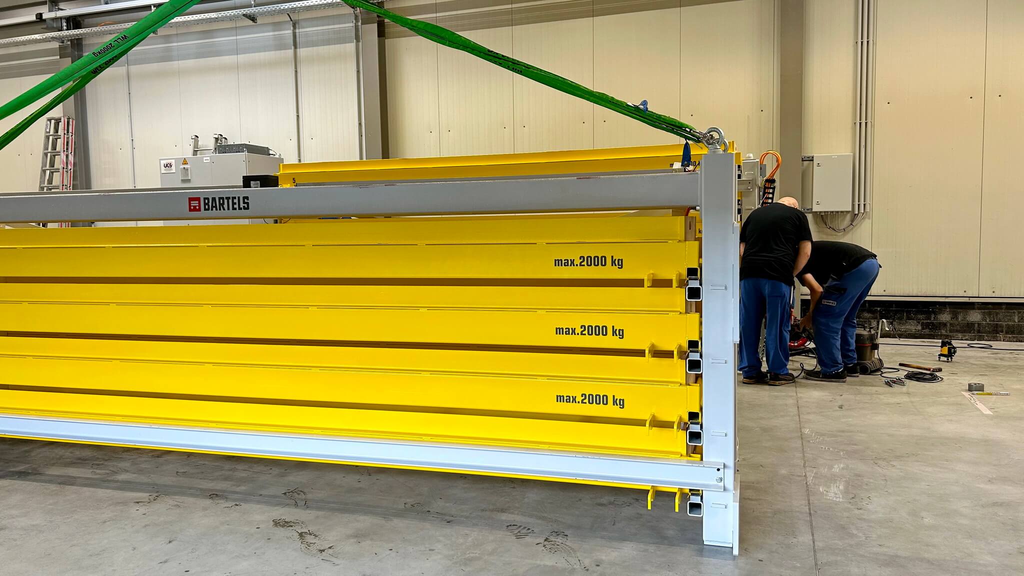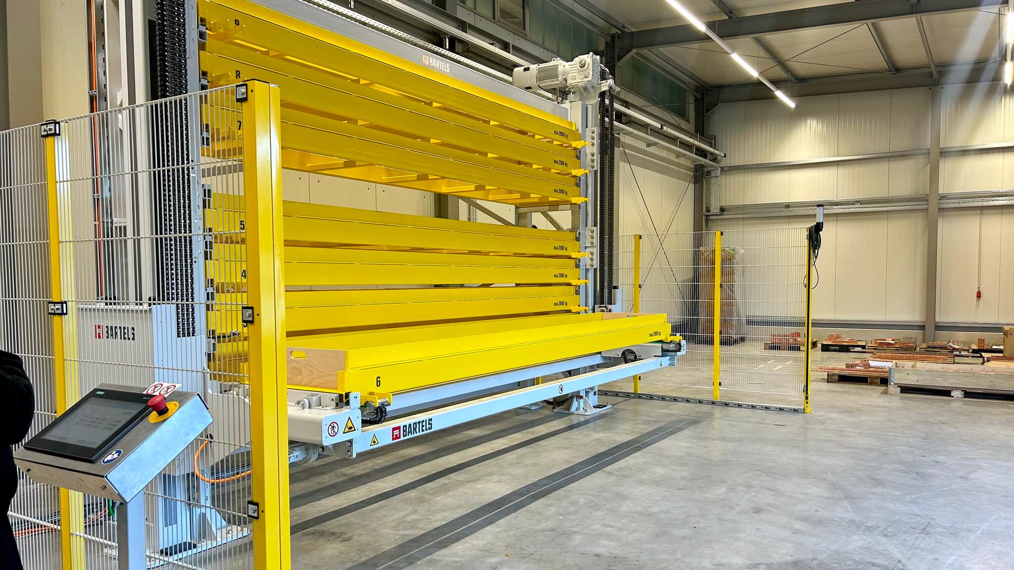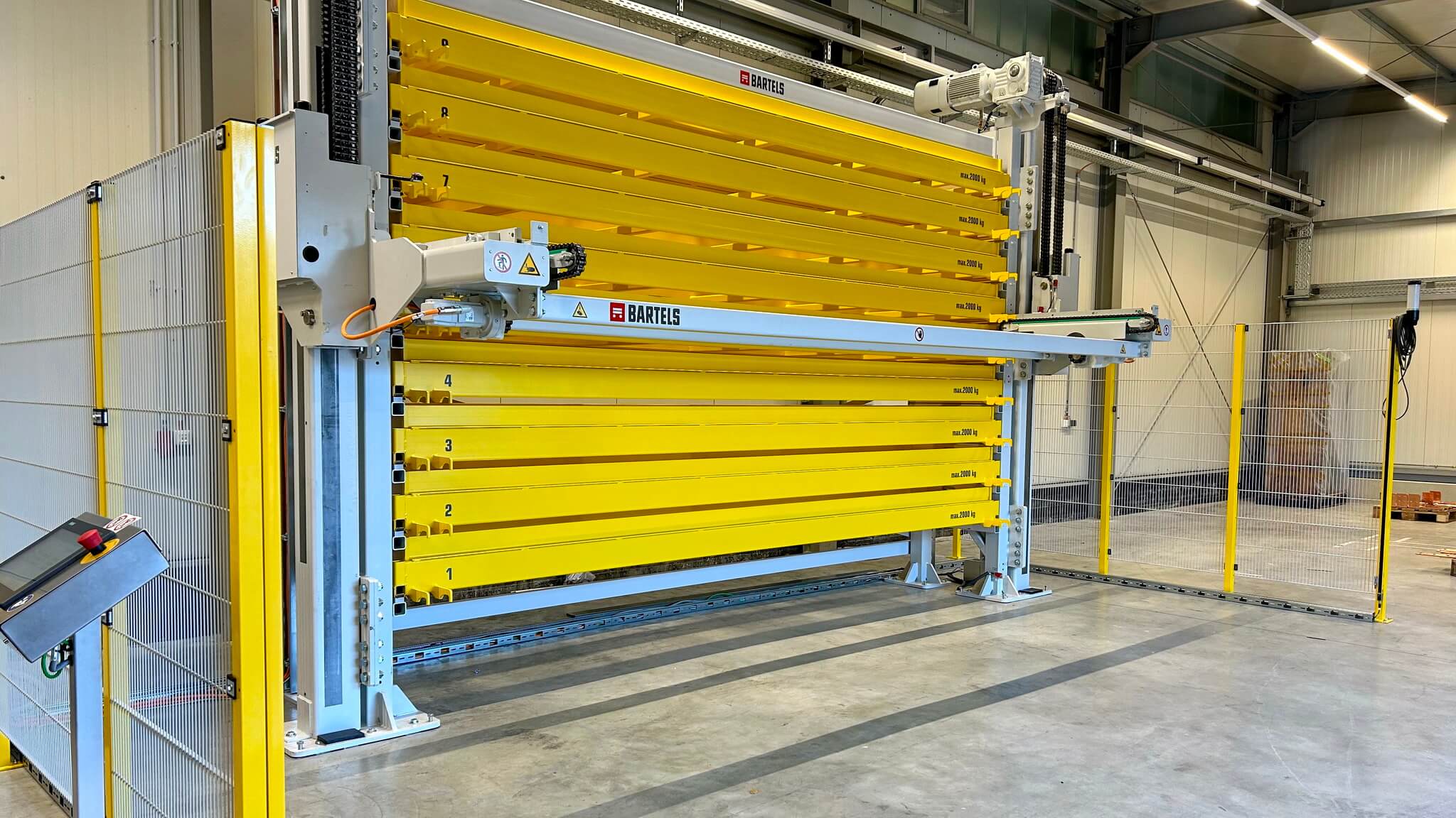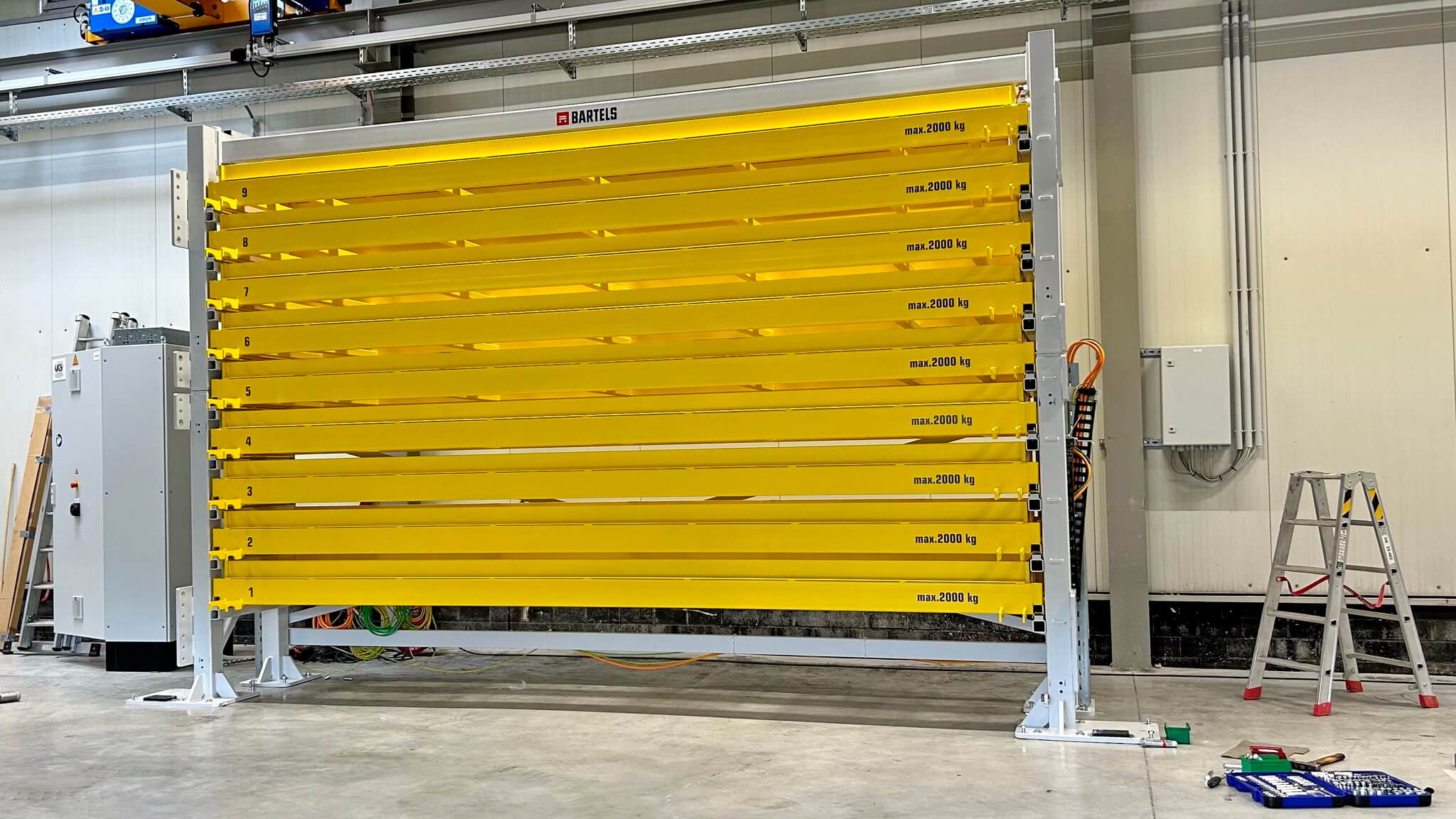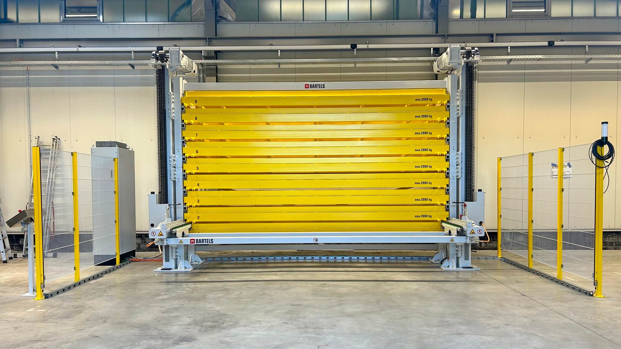 Im Juli 2025 hat Bartels seinen neuen Automatic-Tower erstmals bei einem Kunden installiert. Am Stammsitz der Gräper Gruppe in Ahlhorn bei Bremen wurde die vollautomatische Regallösung in einer maßgeschneiderten Version für Langgut aufgebaut. Und das in Rekordzeit. Der Aufbau der Stahlkonstruktion, die Verlegung von Kettenzügen und Kabeln, die Installation von Schaltschrank und Bedienpanel sowie die technische Abnahme und Inbetriebnahme erforderten lediglich zweieinhalb Arbeitstage.