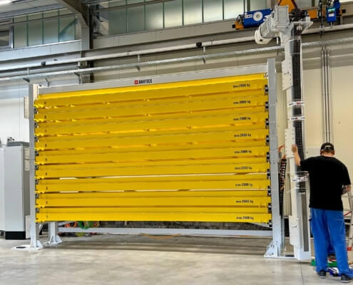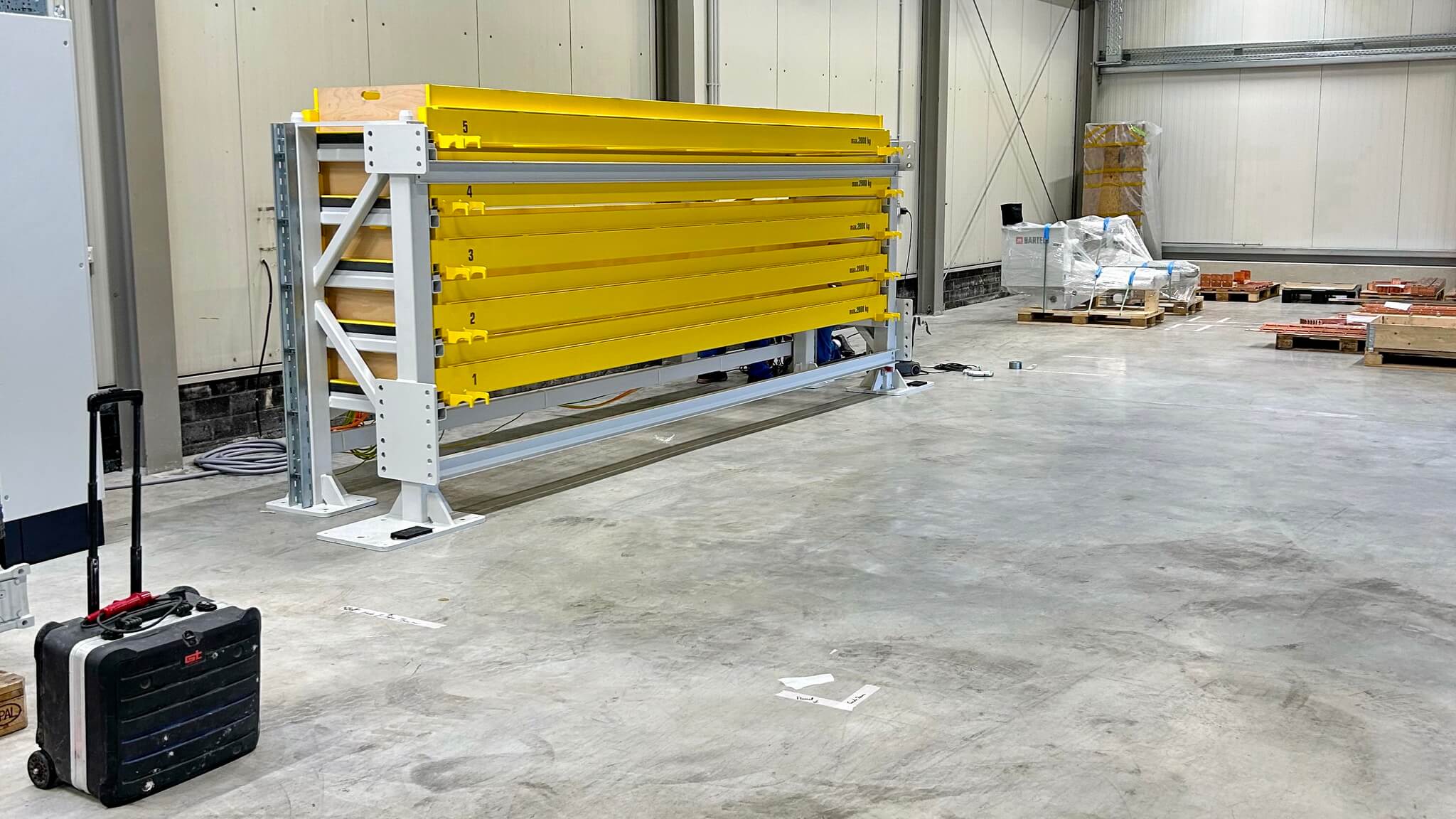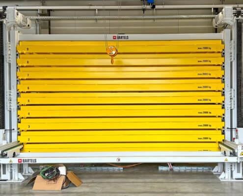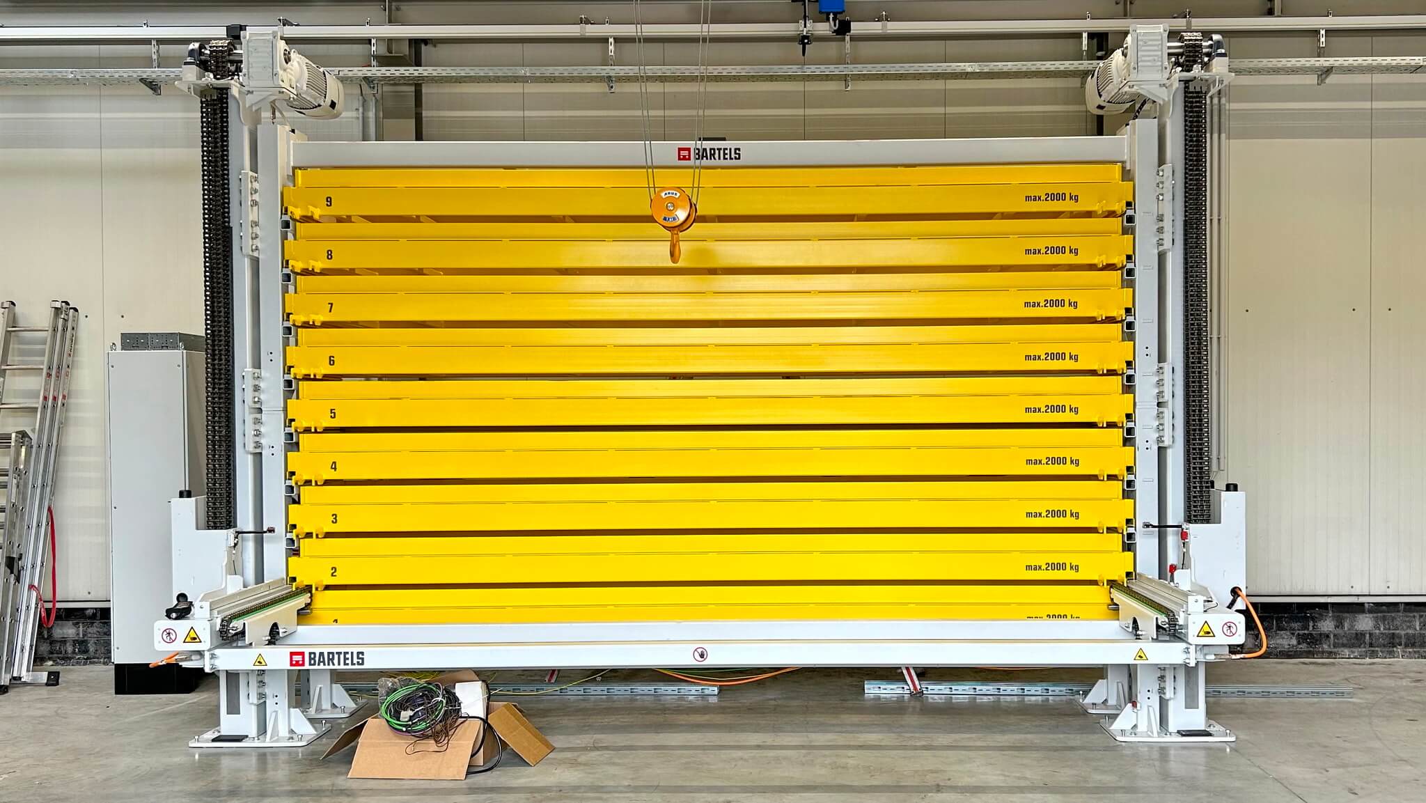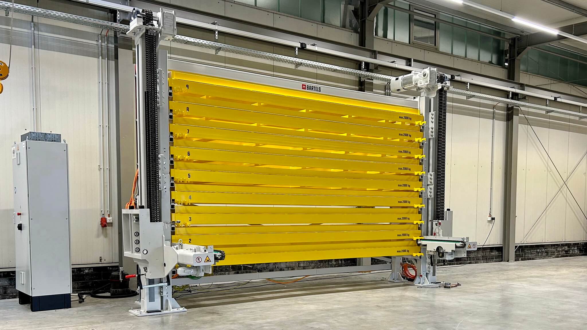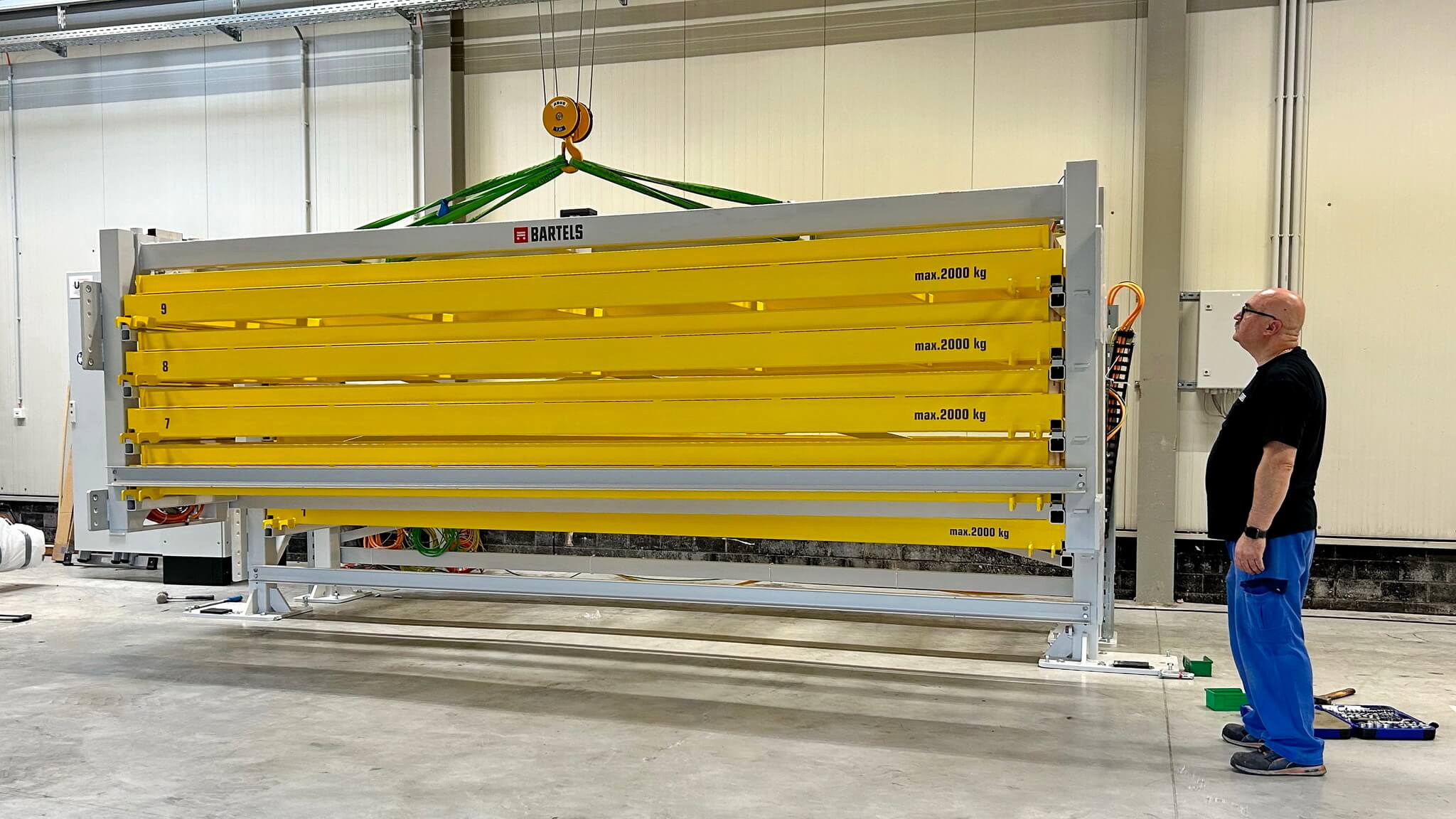 Im Juli 2025 hat Bartels seinen neuen Automatic-Tower erstmals bei einem Kunden installiert. Am Stammsitz der Gräper Gruppe in Ahlhorn bei Bremen wurde die vollautomatische Regallösung in einer maßgeschneiderten Version für Langgut aufgebaut. Und das in Rekordzeit. Der Aufbau der Stahlkonstruktion, die Verlegung von Kettenzügen und Kabeln, die Installation von Schaltschrank und Bedienpanel sowie die technische Abnahme und Inbetriebnahme erforderten lediglich zweieinhalb Arbeitstage.