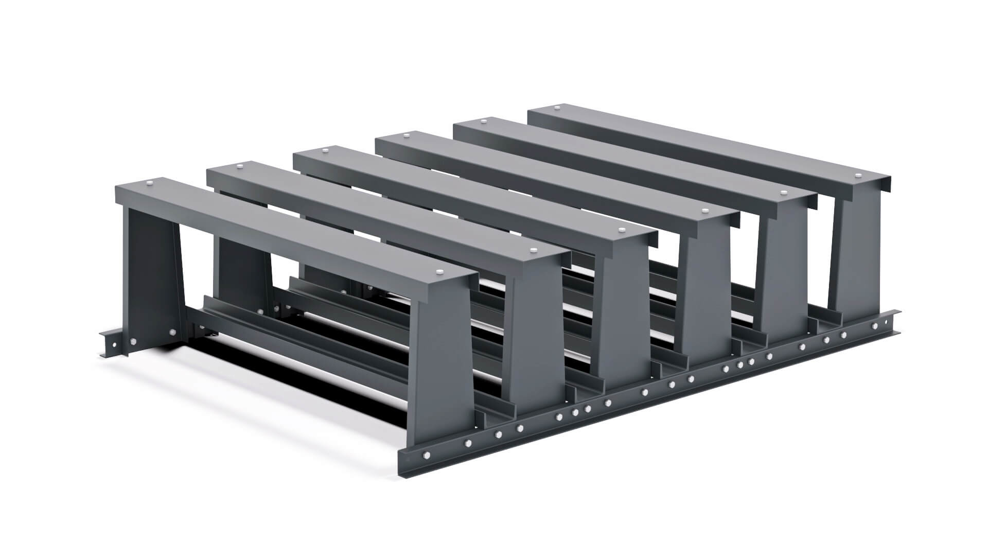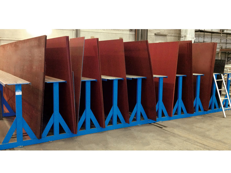 Das Tafelregal besticht durch seine kompakte Stahlkonstruktion und ist besonders raumsparend. Das Tafelregal wird je nach Anlagengröße verschraubt oder verschweißt. Bei breiteren Blechen und Kranentnahme kann der Trennsteg begehbar ausgeführt werden, um das zu entnehmende Blech bequem am Kran anzuschlagen.