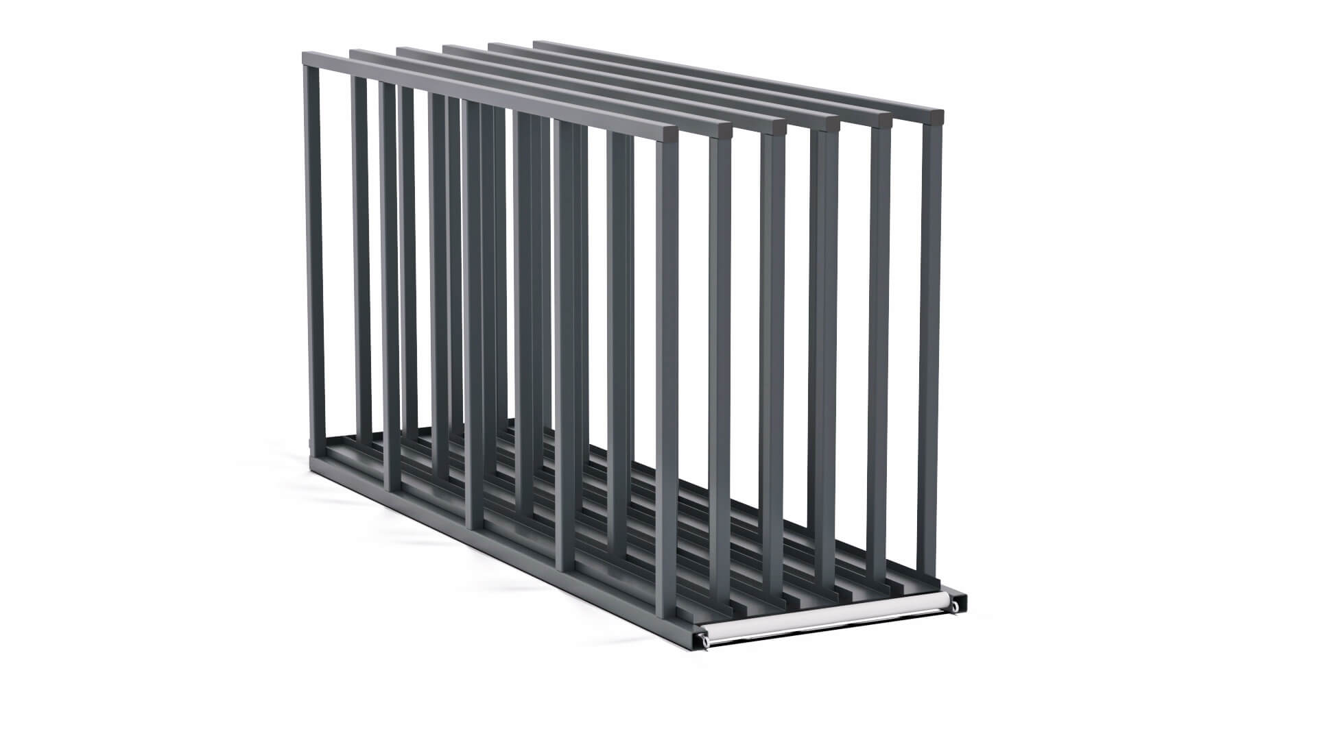 Das Tafelregal besticht durch seine kompakte Stahlkonstruktion und ist besonders raumsparend.