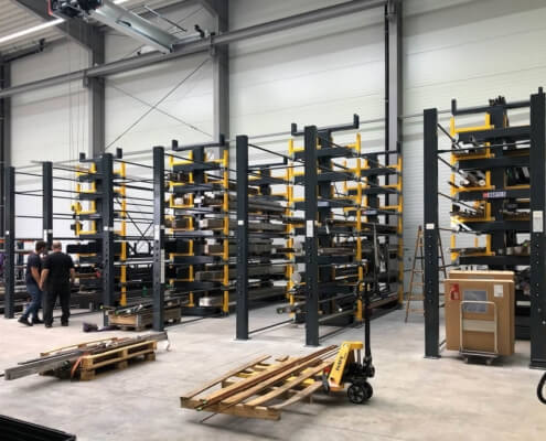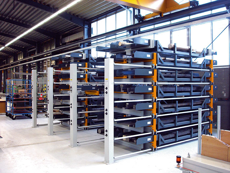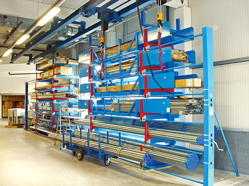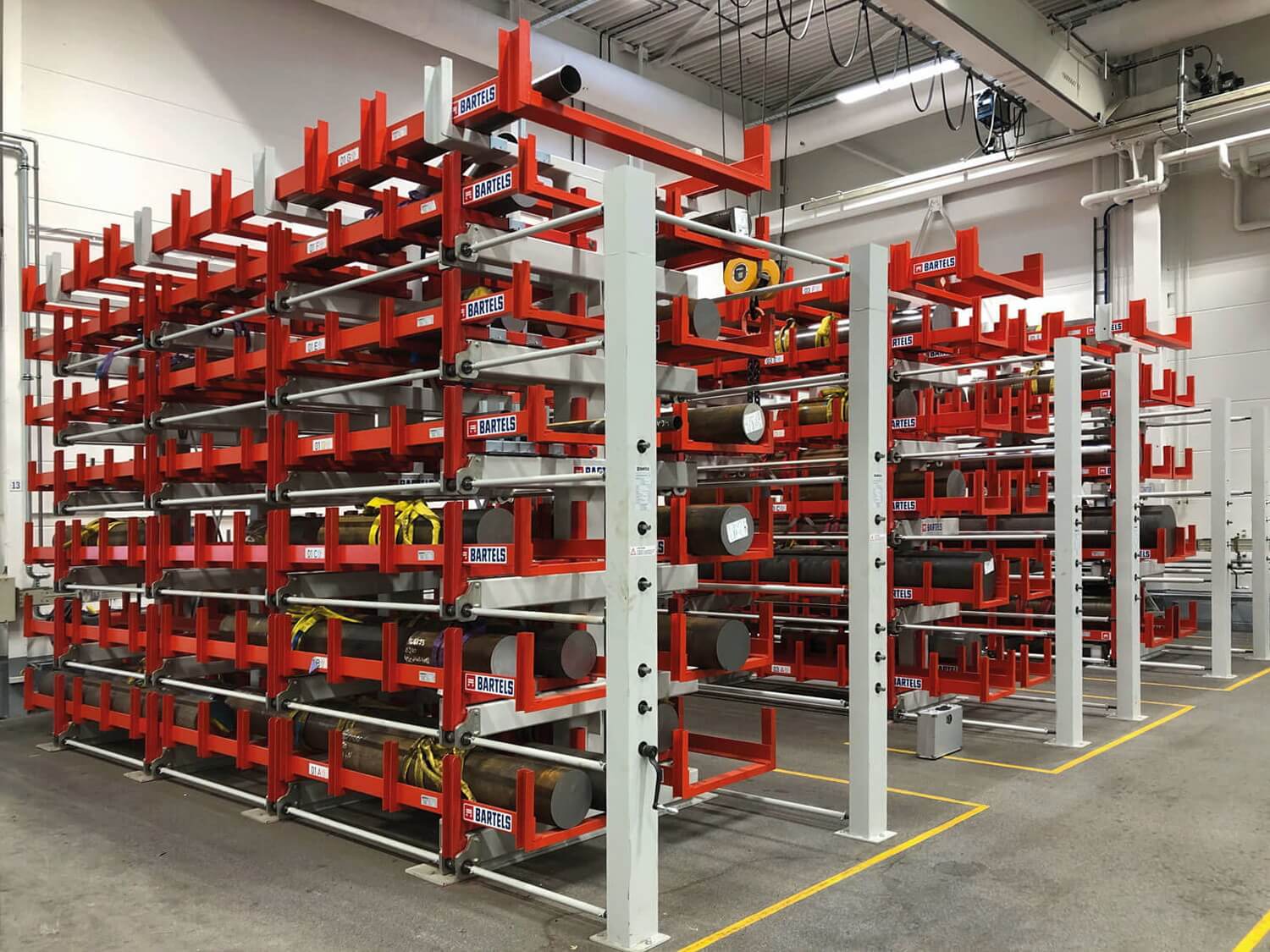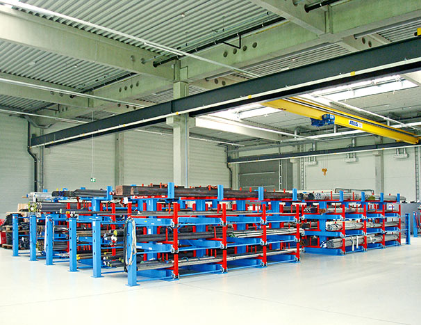 Die Bandbreite der zu lagernden Güter reicht von leichten Kunststoffrohren über Stahlrohre bis hin zu Profilen und Holzplatten. Die Regale können flexibel an unterschiedliche Lagerguthöhen und Belastungsanforderungen angepasst werden.
