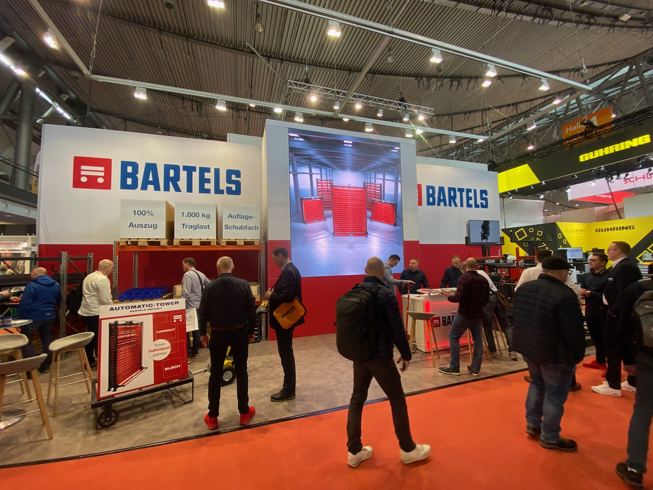 Bartels präsentiert sich regelmäßig auf der LogiMAT in Stuttgart und ist dort seit vielen Jahren mit einem festen, wiederkehrenden Stand vertreten. Wir laden Sie herzlich ein, uns dort zu besuchen — unser Team freut sich darauf, Sie persönlich zu begrüßen und Ihnen unsere Lösungen vorzustellen.